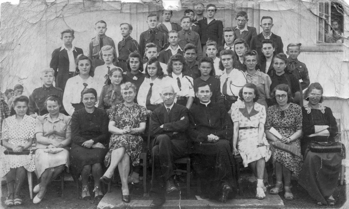 Uczniowie i nauczyciele szkoły podstawowej w Zbiersku - lata czterdzieste